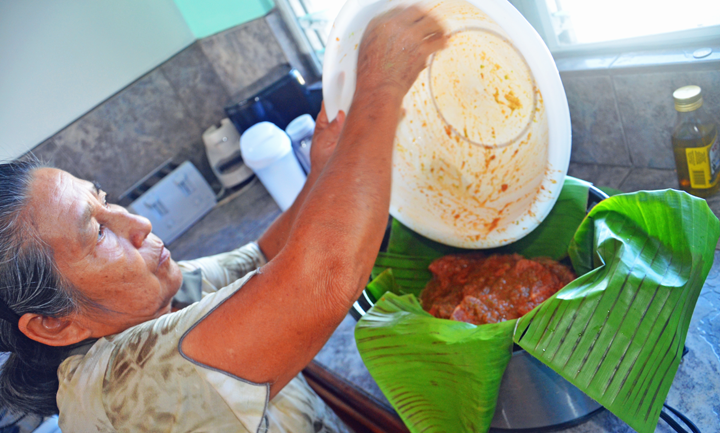 On Ambergris Caye, there actually wasn't an abundant supply of firewood for the traditional method. And, when I learned that my teacher, Dommie, preferred to prepare the dish in a crock pot, I had to go along with that convenience. Dommie, a neighbor of my sister, on occasion prepared traditional dishes for island visitors. I was delighted she was willing to teach me how to prepare pibil pork.