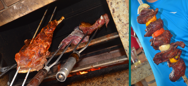 On my final night in Brasil, we went to a different kind of churrascaria. At this one, the meat was cooked on the table with a double flamed grill. And, it wasn’t ribs. It was thick steak. As the meat cooked, you melted cheese on top of it. Absolutely everything tastes better with cheese.