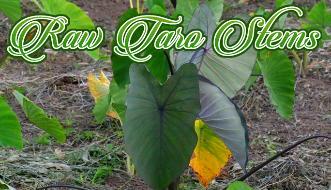 As I said, taro stems tasted like celery, but there was an after effect. I noticed a little later that it felt like I’d swallowed a cactus. Little tiny spears pierced my tongue and halfway down my throat. I thought it was an allergic reaction. But no, that’s simply what happens when you eat raw taro stems. And the cure, that nobody bothered to tell me, was lemon juice. I simply had to suffer about half an hour and let time take its course.