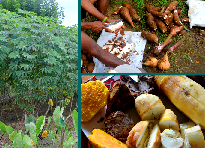 enormously large roots that are cooked sort of like potatoes. I
