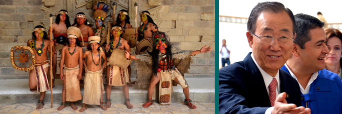 Copán is a UNESCO Heritage Site and was the capital of the region when the Maya civilization flourished between the 5th and 9th centuries AD. It’s the main reason why anyone and everyone comes to Copán Ruinas. And, this celebration was not just for anyone or everyone. It certainly wasn’t for the most non-famous, world-famous artist to ever visit Copán. It was for the President of Honduras, Juan Orlando Hernández, and the Secretary General of the United Nations, Ban Ki-moon!