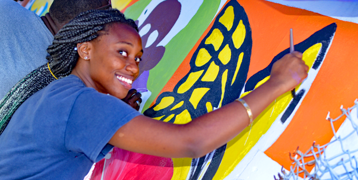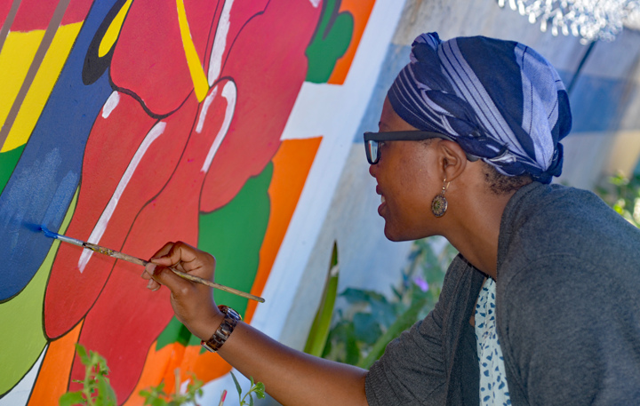 The first mural was in Standpipe, a community directly across the street from the U.S. Embassy. A wall in a major intersection in the community was selected and, thankfully, it was very smooth. The people I met with liked the idea of illustrating things inside the word "Standpipe". And, in case you were wondering, the area got its name because there once was a single standing pipe that provided water for the entire community.