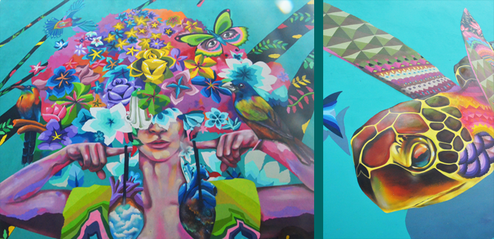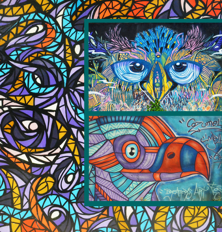 But, Fifth Avenue is very long. When you stroll, if you look for art and avoid any and all eye contact with the souvenir hawkers, you'll see the woman with the floral hair about at the intersection of Fifth Avenue and Calle 8. But, let me repeat, Fifth Avenue is long. The other murals were located in a section of town with a lot of murals all clustered together. It was about 25 blocks later at the intersection of Fifth and Calle 70.
