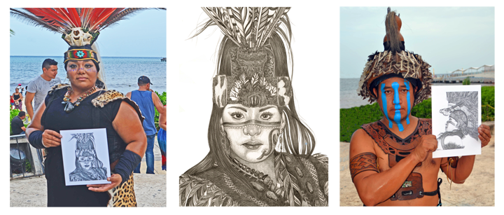 My final task of the day was down on the beach at the main gathering point in Playa del Carmen. The pier is not far away and most afternoons you can enjoy Aztec dancers performing their traditions. I was hoping to find Edgar. It’s his portrait that I entered in the PromoWest Art Competition in the Arena District in Columbus. Edgar’s portrait is now on display in my hometown. I headed to his hometown to give him a few copies of that art.