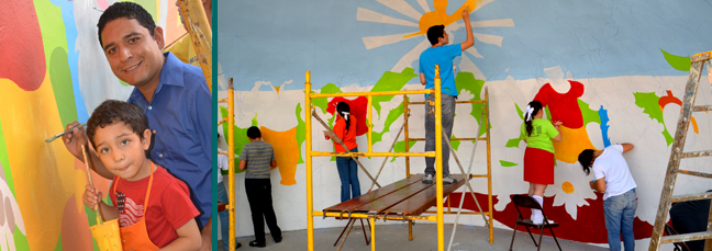 A few minutes later, I had the shock of my muraling career. The entire group returned wearing yellow T-shirts that read, "Phillip's Team". Like I said, they set the standard for how to treat a guest. I felt so very appreciated and I just completely adored my "equipo".