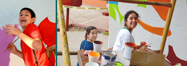 As it turned out, I had hand-selected stellar artists at my side. There was very little that needed to be touched up when the school day ended. I was so very impressed. But the day was not over. After my very first Mexican siesta (which became a habit I really enjoyed), we returned to school for an evening session of painting. I didn't know what to expect, but about fourteen kids showed up with smiles on their faces and paint brushes in their hands. It was a big mural, there were several evening and weekend sessions. A cast of thousands, or at least fourteen, showed up every time.