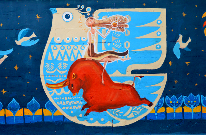 for him.Not only was Octavian able to speak in English, he was an extremely talented artist. He recently entered a mural competition in Chisinau. His project used both Greek and Moldovan symbols to share the story of Zeus kidnapping Europa. With his design, he wanted to make it clear that Moldova is part of Europe, even if you've never heard of it. If like me, you don't know the myth, it's an easy Google search. Octavian's work was well appreciated in the community. In fact, he won a trip to Paris. Not bad for his very first mural!