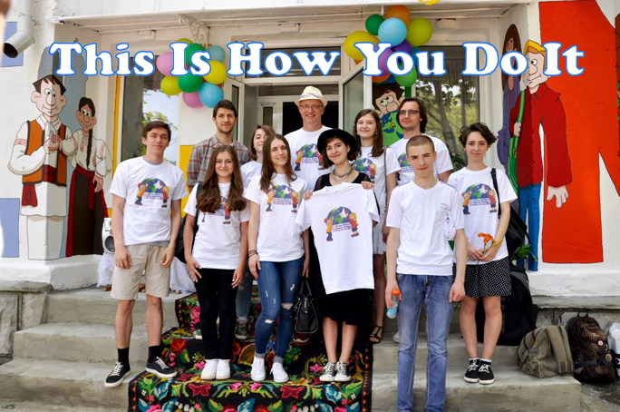 When the munchies and schmoozing were done, I went outside to find that most of my painters stayed around to say good-bye. I was so pleased that my kids waited. Each had to say good-bye, multiple times, and get a hug. It was certainly a “pinch me experience”. And, everyone from the ambassador on down said that they looked forward to my next murals in Moldova. I’m certainly ready to eat placinta, learn a few more words in Romanian, and paint another masterpiece with my new friends.