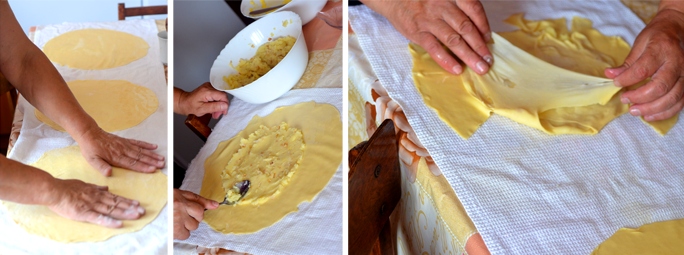 Okay, the above method was the artsy-fartsy way I saw at a restaurant. When I made my placintas, it didn't matter which way you fold what as long as the filling was hidden deep inside. There is no pressure here.