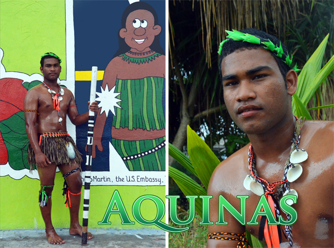 The storm clouds disappeared as quickly as they arrived. And, with the clearing came the best treat of the day. Aquinas, one of my painters from day one, also performed in a traditional dance troupe that recently represented Nauru at an international program in Guam. There were no performances while I visited the island, but Aquinas relented after incessant begging, and showed up for a photo shoot. Not only did he look tremendous in the outfit he created especially for me, but he sprayed himself up with coconut oil. He smelled delicious. There were about nineteen members of his troupe, but Aquinas assured me he was the best looking member.