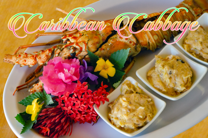 I enjoyed my sister’s cooking while in Belize. She did something with cabbage that I thought was impossible. She made it delicious. I’ve always eaten cabbage in cole slaw. I’ve never been able to actually rave over cole slaw (but I do like my sister’s Pina Colada version). However, when my sister made her Caribbean Cabbage, I had to get the recipe and take a photo. It didn’t hurt that it was served with lobster fresh from the sea delivered to her doorstep by the local fishermen. On top of that, it had cheese and bacon. How could anything go wrong with that recipe?