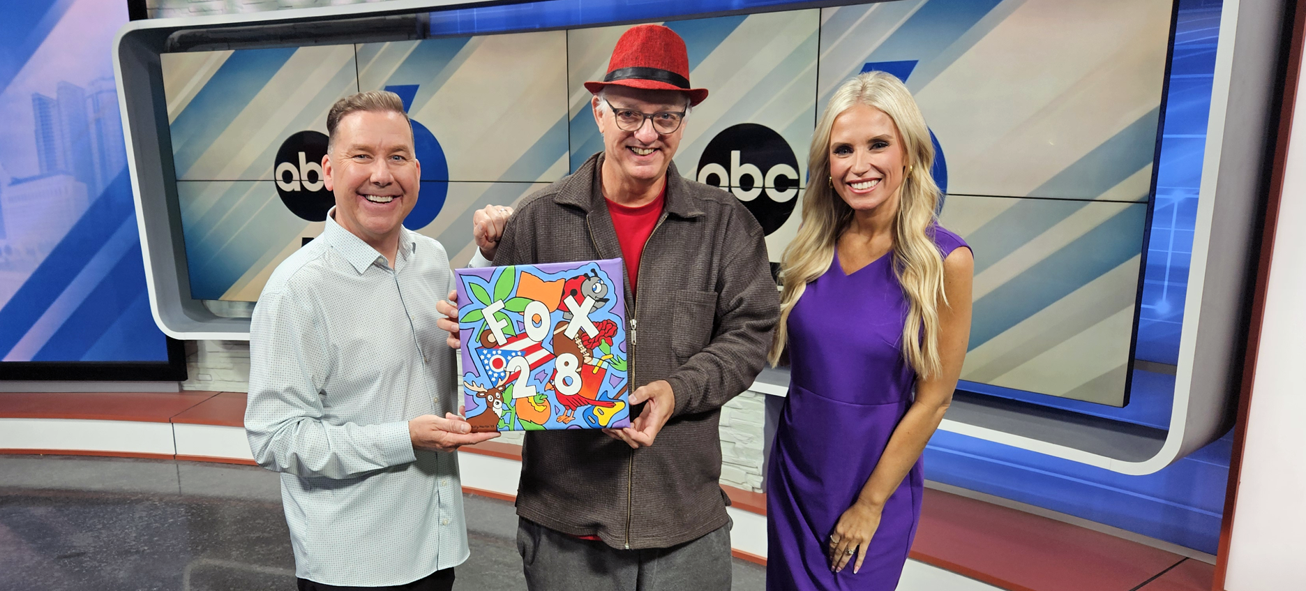 Upon completion of the mural, another trip to the Fox 28 station was necessary. I had to deliver the final artwork to my two hosts. Katie and Phil were just as gracious on my second visit, entirely off camera. They promised that there will be a treasured place for it somewhere in the Fox 28 studio. (I wouldn't want it to just be stuffed in some closet, never to be seen again and never appreciated.) Since the painting was going to the station, I also gave both of the hosts one of my children's books for their own keepsake. Hopefully, they'll find someone to read it to. And, who knows? It could lead to a second interview.