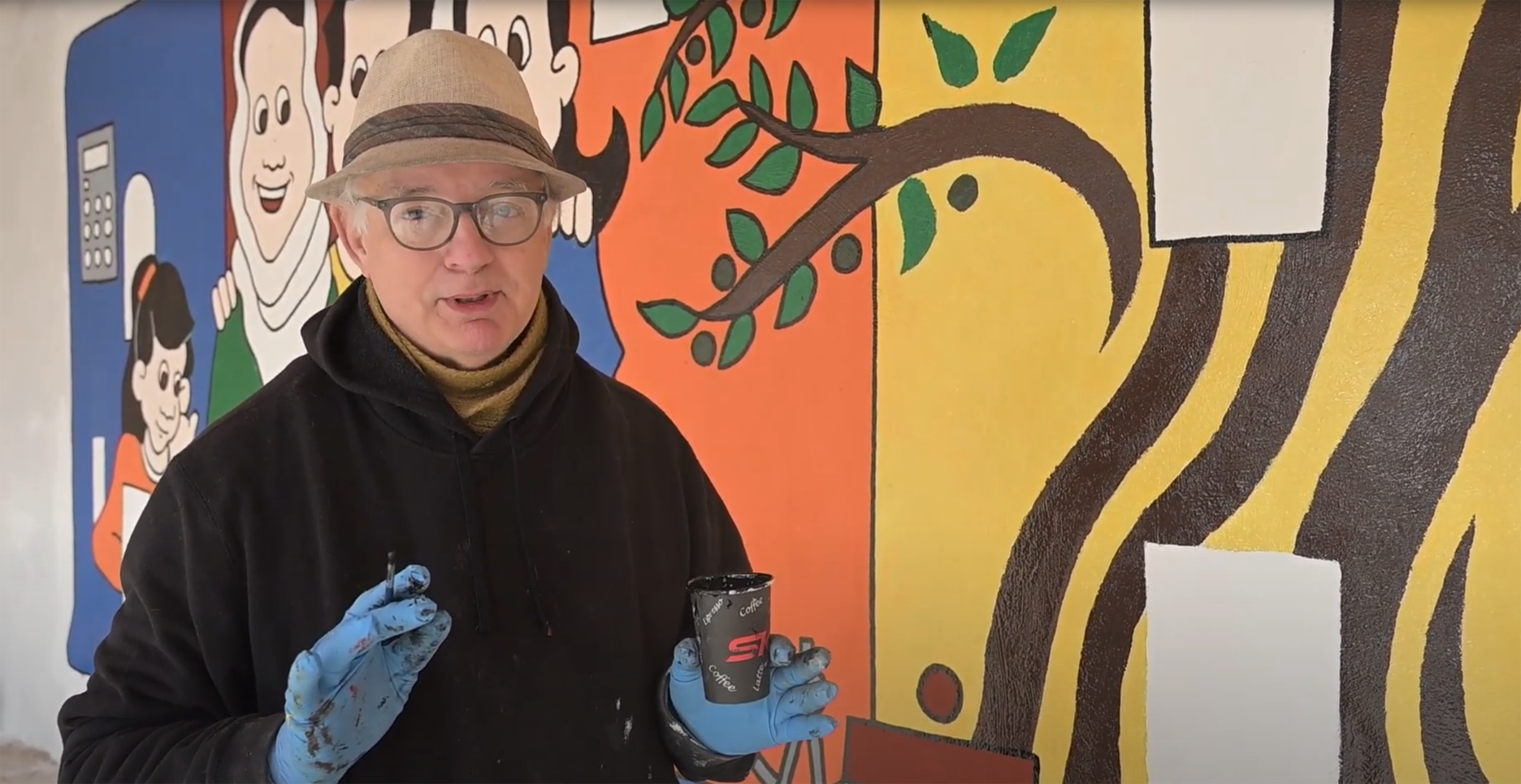 The interview was live. That meant no do-overs, so I had to know what I was talking about. Very fortunately, I'd answered these questions over and over throughout my muraling experiences. I explained how I fell into this. It wasn't my own genius. The murals grew from my clipart that has been used around the world. The first mural was in Namibia where they wanted a mural at a daycare center for Aids orphans with my cartoons. They just didn't expect that I would actually show up in Africa to help with the project. But, that is how my community muraling around the world all started.