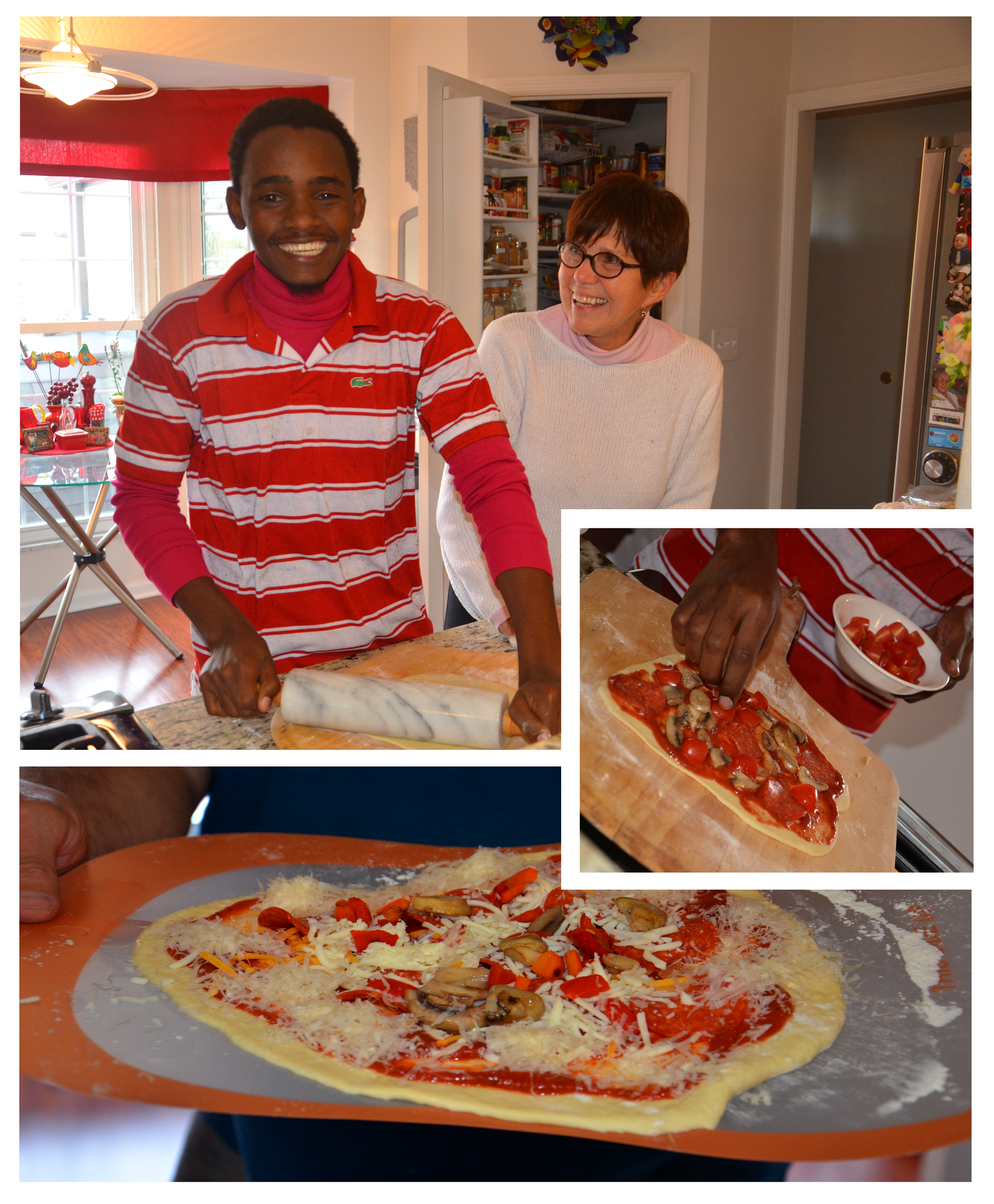 When Gerard came to Anne's home, we had a little variety in the mix. Tacos were replaced and the pizza crusts were individually rolled by each guest. If you guess that Anne's crust looked the best, you would be right.