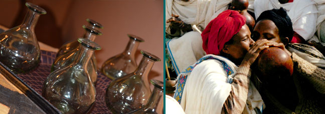 When I visited Ethiopia, the favorite local drink was honey beer. I don't really like beer - at all - and I just found it impossible to do as the Romans, or Ethiopians, did. I did, however, really like the way honey beer was consumed. I found two ways. The traditional glass was sort of pear shaped with a spout on top, almost like a science beaker. It made the whole concept of drinking honey beer a lot more attractive. In fact, without ever tasting one drop of honey beer, I had to get some of those glasses. I only wanted a set of six. They sold in sets of twelve. Okay, so I have honey beer glasses to spare. And, whenever I have guests with kids, I offer them drinks from my favorite glasses from Africa. Kids are always thrilled.