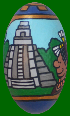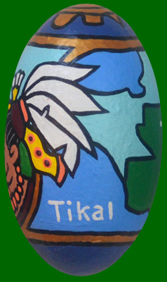 Twice is not enough. If you go to the Maya ruins in the Yucatan, you'll share the experience with thousands of people. If you explore Tikal, it will be with hundreds. That is way more impressive. You can't actually climb the ruins, which is a shame, but I can tell you that what little I was allowed to climb did me in. My legs ached. I climbed enough. And, if hundreds are too much for you, there's always Copan in Honduras. You explore that with dozens of people. Icon on the top of the egg is a Maya sun symbol. |