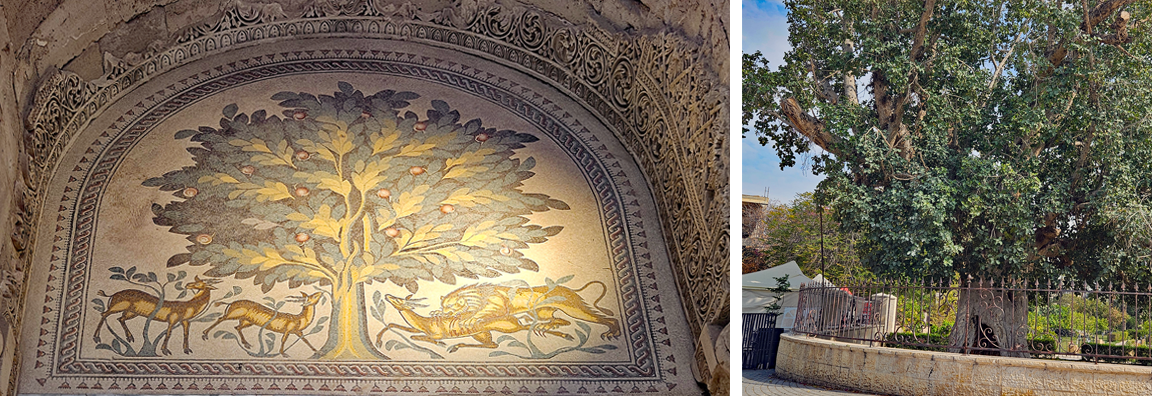 A Little More Dessert One more stop was necessary before leaving Jericho. It is required (well, it should be) to see an old sycamore tree. It isn’t THE sycamore tree that Zacchaeus climbed so he could see Jesus, but it looked old enough to be the one. Yes, a photo was in order.