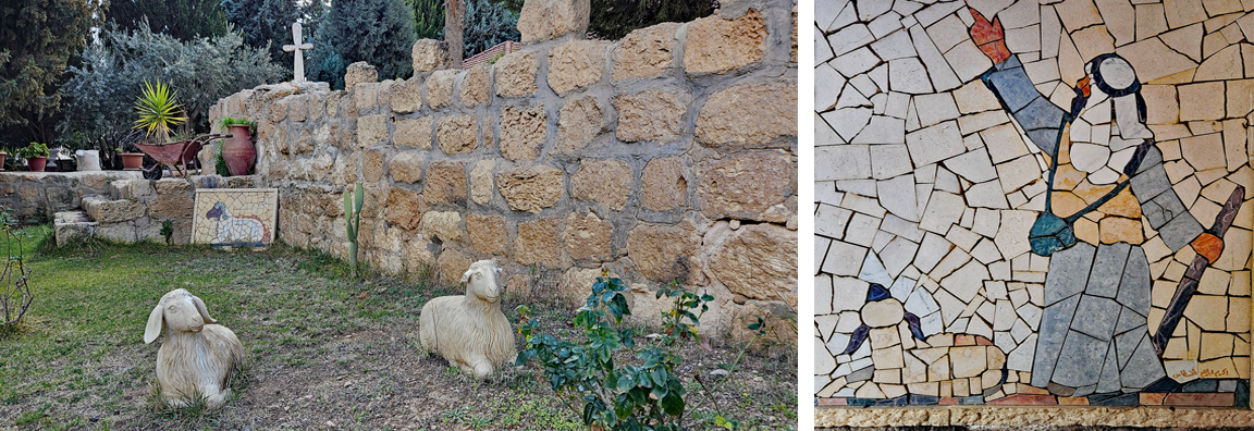 On a free afternoon, I asked if I might see the Shepherd’s Field. Silly me; I thought I would see a field. All of Beit Sahour has grown up around the traditional site. Shepherd’s Field is located in an area owned by the Greek Orthodox Church. It is enclosed by a stone wall and contains a garden of fruit and olive trees that surround a beautiful church. It’s a soothing stroll, but the only sheep I saw were made of stone, and the only shepherd was a mosaic.