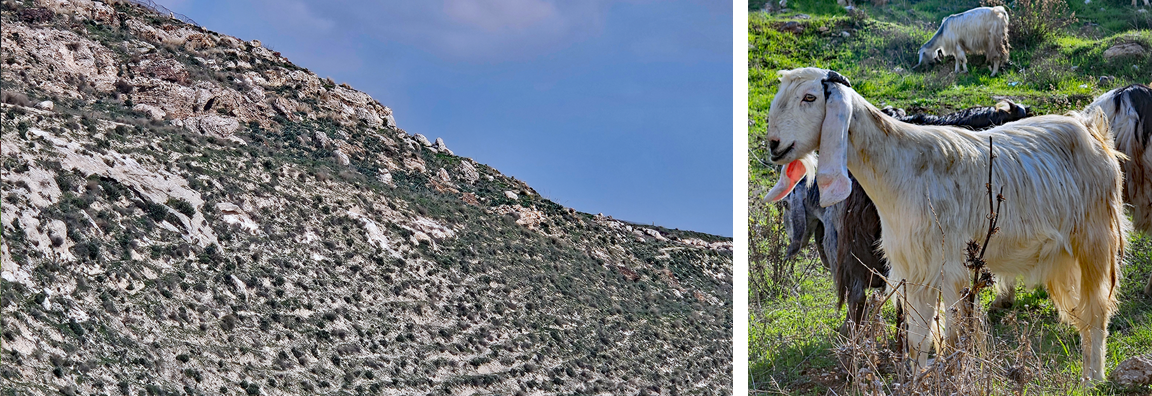 Very fortunately for me, my driver had to run an errand. It took him to the edge of Beit Sahour where I saw fields dotted with caves where shepherds might have slept and possibly corralled their flocks. And, even better, I saw sheep and goats grazing along the roadside. It’s what I envisioned I would see in Bethlehem.